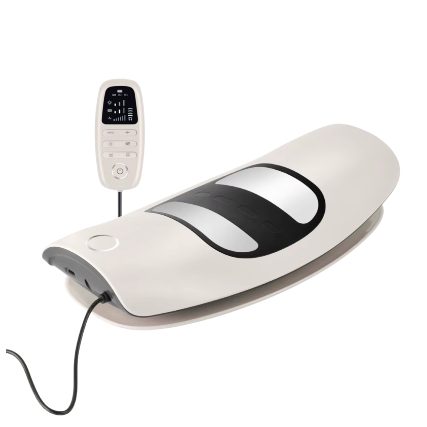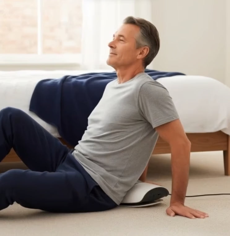 EMS (Electrical Muscle Stimulation) sends gentle pulses to activate deep spinal muscles, strengthening your core while you relax—like having a physical therapist work your muscles automatically.
